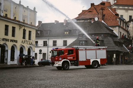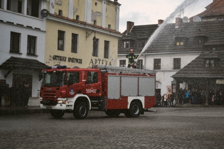 Finalna konfrontacja z armatką OSP Kazimierz Dolny trochę nas przerosła. W tym miejscu chcieliśmy serdecznie podziękować całej Ochotniczej Straży Pożarnej w Kazimierzu Dolnym za pomoc w realizacji odcinka, w szczególności za otwartość i poczucie humoru. Obiecujemy nie atakować już nigdy więcej wozów strażackich. Mateusz pod ciśnieniem wody nauczył się tańczyć breaka, Łukasz stoczył całą walkę na bezdechu w obawie o utratę jedynek. Spotkanie z armatką wodną ma niewiele wspólnego z mocniejszym prysznicem (początkowa teoria Kołcza). Nie zabierając Wam więcej cennego czasu, zapraszamy do sprawdzenia fotorelacji.