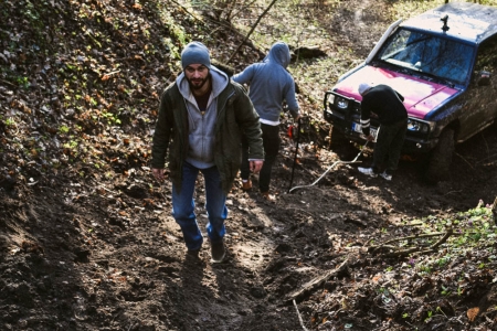 Na chwilę przed Świętami Wielkanocnymi postanowiliśmy przygotować odcinek specjalny, odbiegający nieco od przyjętego scenariusza naszych projektów. Chcieliśmy również, aby był to odcinek lokalny, odcinek szalony. W okolicach Puław i Kazimierza Dolnego panuje dość specyficzny mikroklimat, sprzyjający ludziom szalonym i nastawionym na ekspresję. Już na samym wstępie realizacji odcinka założyliśmy sobie spotkanie oko w oko z OSP Kazimierz Dolny, a wszystko za sprawą corocznej tradycji oblewania ludzi wodą w świąteczny poniedziałek. Postanowiliśmy jednak przygotować się na to starcie projektując nasz superczołg, sprawdzając go następnie w offroadowych zadaniach. Prowadzeniem potwora zajął się Grzesiek, a Łukasz, Piotrek i Mateusz przyjęli funkcję grzechotek. Czołgiści z nas są raczej mizerni, stąd szybko okazało się, że przeznaczona nam jest piechota. Wyciągarka uratowała nam wielokrotnie tyłki, butów niestety uratować się już nie dało.